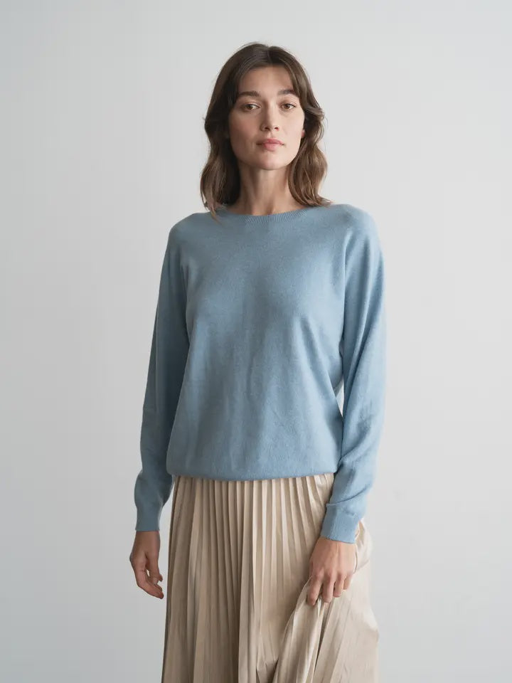 This lightweight crew neck sweater is a the perfect pop of color for Fall layers! Featuring a crew neckline and a banded hem, it goes seamlessly with blazers or under a jumper for a modern look!