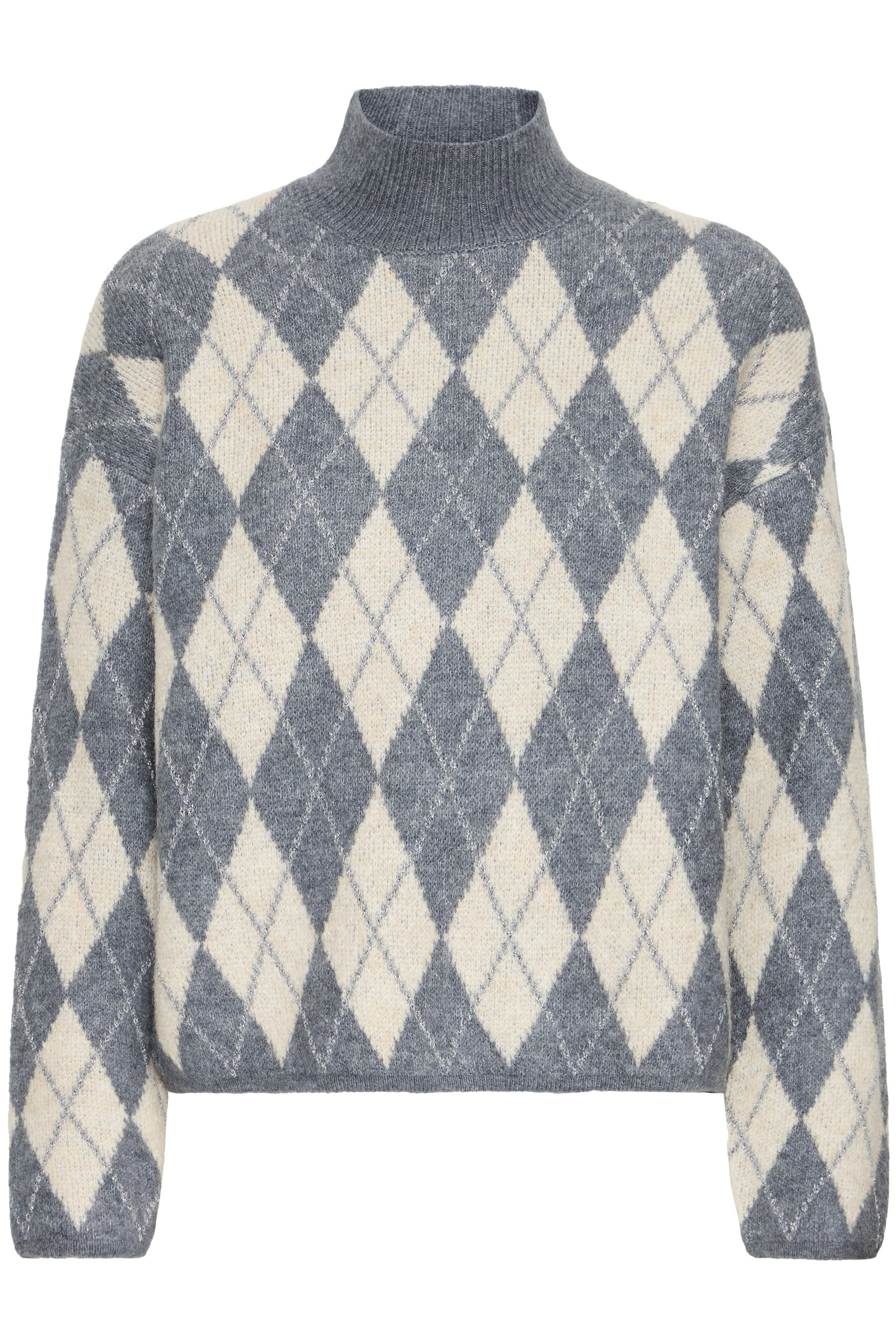 The Nafta jumper features an argyle print in a creamy, neutral blue. Perfectly complements tans, browns, blacks and grays and will give your Fall layers an extra "pop".